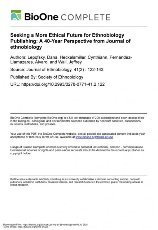 Seeking a More Ethical Future for Ethnobiology Publishing: A 40-Year Perspective from Journal of Ethnobiology 1st Edition Lepofsky Digital Instant Download